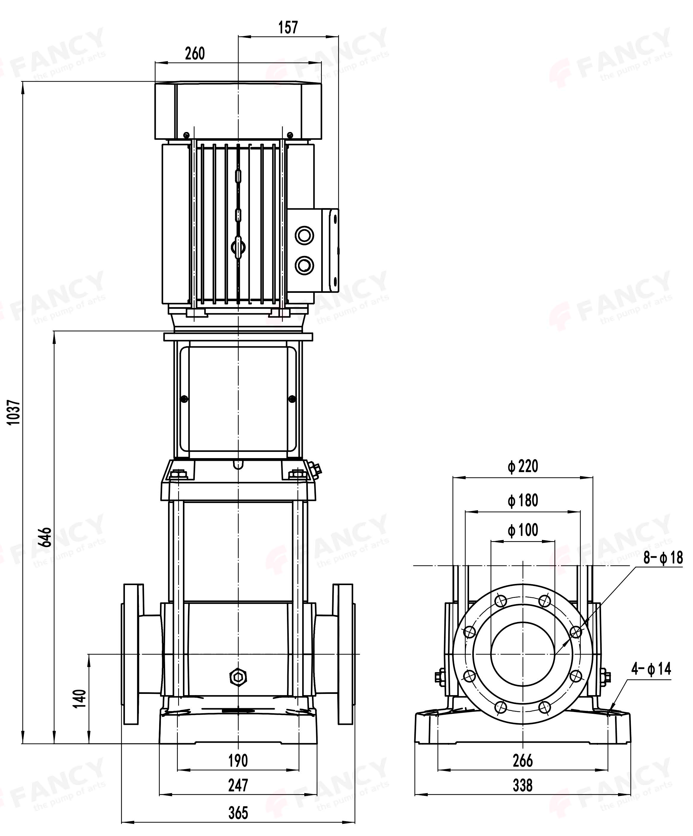 - Вертикальный многоступенчатый центробежный насос из нержавеющей стали 304.