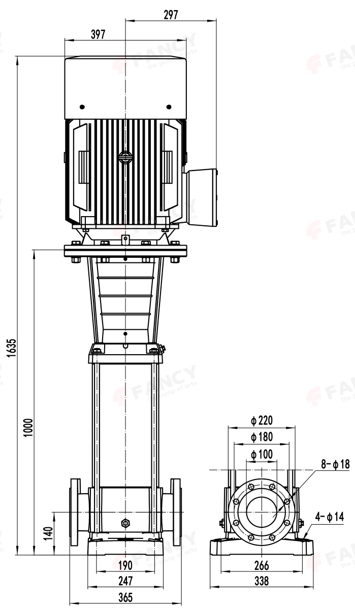 - Вертикальный многоступенчатый центробежный насос из нержавеющей стали 304.