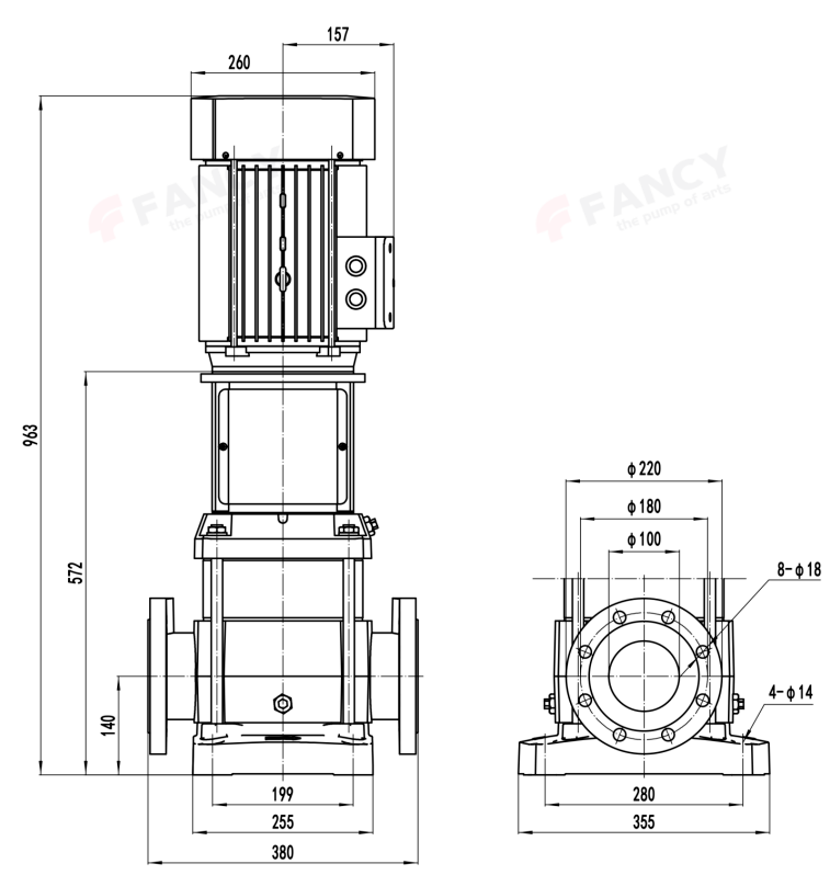 - Вертикальный многоступенчатый центробежный насос из нержавеющей стали 304.