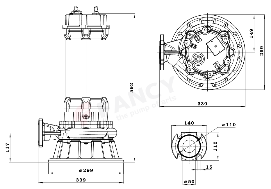 - Новая конструкция погружных насосов WQV для сточных вод с режущим рабочим колесом.