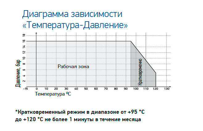- Изделия должны эксплуатироваться при давлении и температуре, изложенных в таблице технических характеристик.