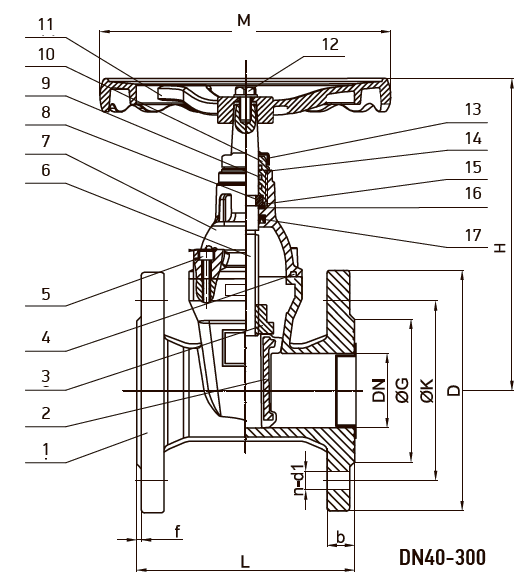 Задвижка чугунная с обрезиненным клином RSV03 DN300 PN10
