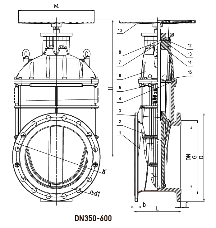 Задвижка чугунная с обрезиненным клином RSV03 DN600 PN10