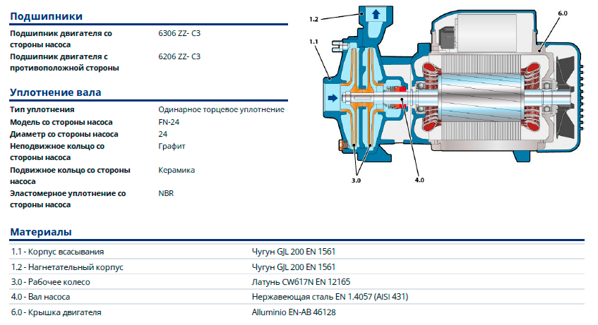 - Максимальное давление в корпусе насоса: 10 бар; 6 Бар для 2CP25/130N.