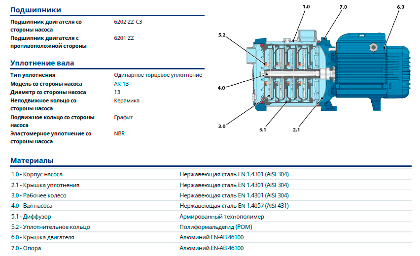 Насосы серии FCR подходят для перекачивания чистой воды и жидкостей, химически неагрессивных по отношению к материалам, из которых изготовлен насос.